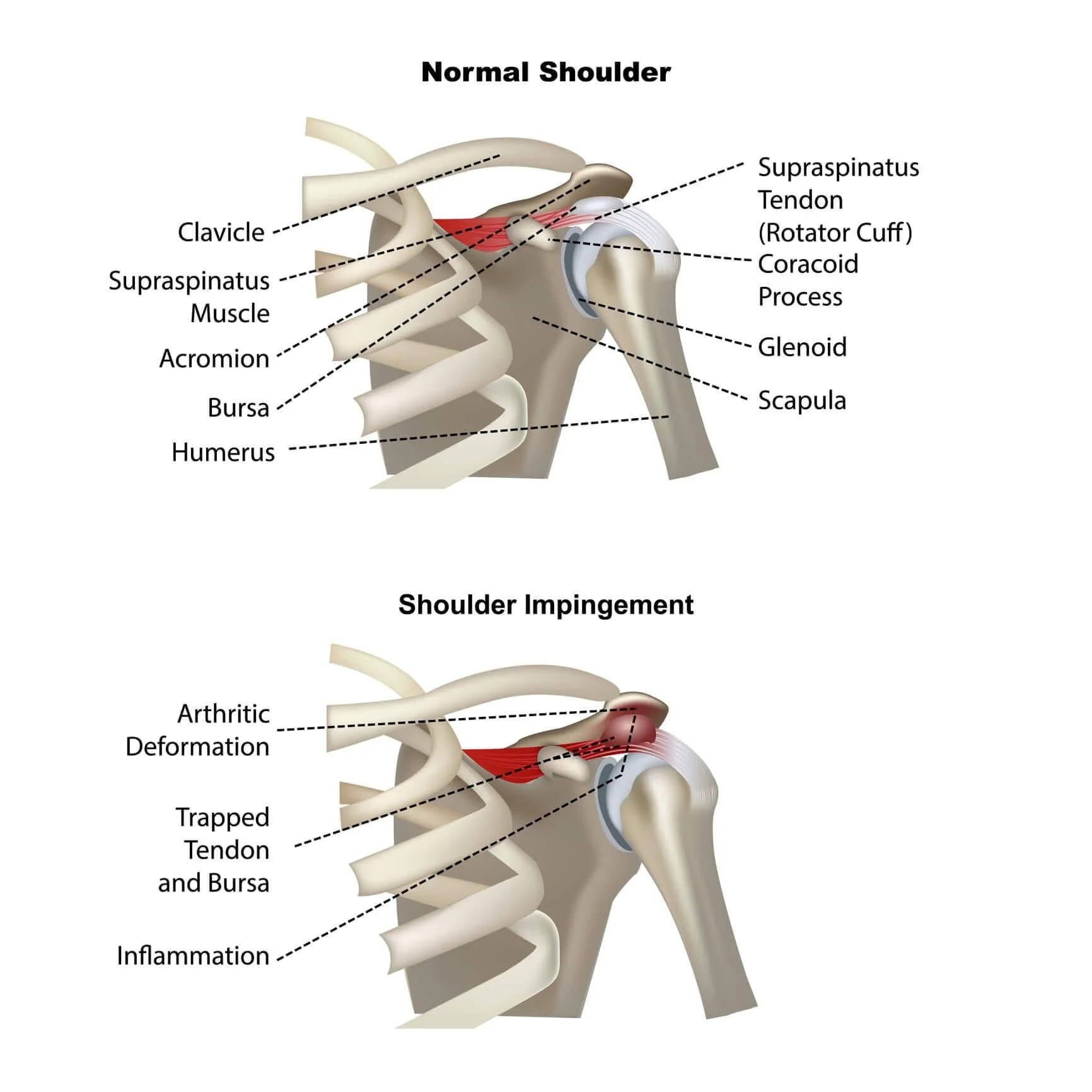 Irritation or damage to the rotator cuff muscles that stabilize the shoulder.